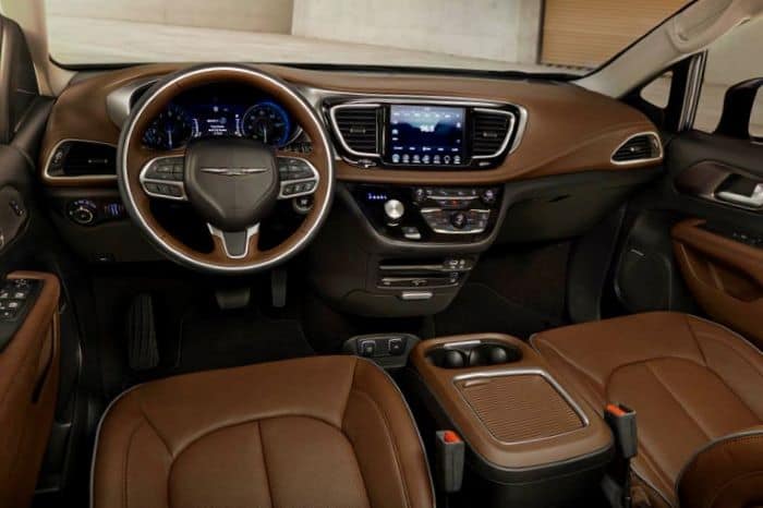 كرايسلر باسيفيكا 2021 من الداخل واسعة ، مثل سيارات الدفع الرباعي المزودة بوحدات تحكم مركزية أطول إذا اخترت النسخة الهجينة . ستحصل على أحدث التصميمات الداخلية مع تنجيد ومقاعد من جلد نابا.