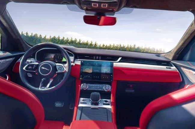 تتميز كل طرازات سيارة جاكوار بشاشة تعمل باللمس مقاس 10.0 بوصات أحدث نسخة من نظام المعلومات والترفيه Touch Pro الخاص بالعلامة التجارية. وتاتي مع ازرار للتحكم الرئيسي في الصوت والمناخ ، مما يجعل من السهل إلى حد ما ضبط هذه الوظائف أثناء القيادة. الجانب السلبي هو أن بعض القوائم محيرة ، وغالبًا ما تكون الشاشة بطيئة في الاستجابة للمدخلات.