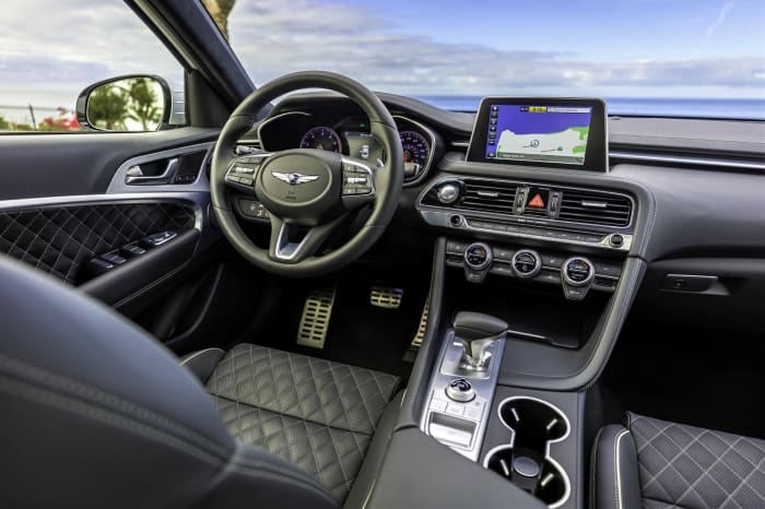 سيارة جينيسيس g70 هي العلامة التجارية الفاخرة لشركة هيونداي . ولهذا فان جودة البناء هي من الدرجة الأولى . وتتميز الطرازات العليا بلمسات راقية مثل التنجيد الجلدي المبطن أو الزخارف المصنوعة من الألومنيوم. جينيسيس هي سيارة تتمحور حول السائق. المقاعد الأمامية بها الكثير من الدعامات لإبقائك في مكانك .