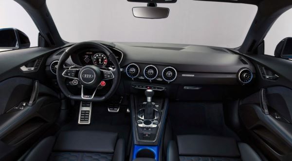 على عكس معظم السيارات الحديثة ، لا تحتوي سيارة TT على شاشة معلومات وترفيه في منتصف لوحة القيادة الخاصة بها. بدلاً من ذلك ، تم دمج جميع ميزات المعلومات والترفيه الخاصة بها في لوحة العدادات الرقمية مقاس 12.3 بوصة في السيارة ، والتي تشير إليها أودي باسم نظام قمرة القيادة الافتراضي الخاص بها. تتميز هذه الشاشة برسومات زاهية ، وهي تنتقل بسرعة وسلاسة بين تخطيطاتها المتعددة. يمكن التحكم في الشاشة باستخدام قرص ولوحة لمس في الكونسول الوسطي ، بالإضافة إلى الأزرار الموجودة على عجلة القيادة ونظام التعرف على الصوت.